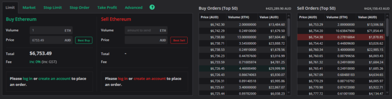 Once you’ve settled on an onramp solution, deposit your fiat currency onto the exchange and swap it into ETH. Most exchanges have an order book – basically, a buy/ask interface. You can put in a ‘sell’ offer for your fiat currency if you want, or you can just immediately buy at the current rate. At most, you’ll spend around 1% of your currency in fees.
