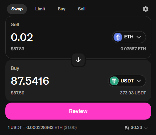 Swapping your ETH into USDT